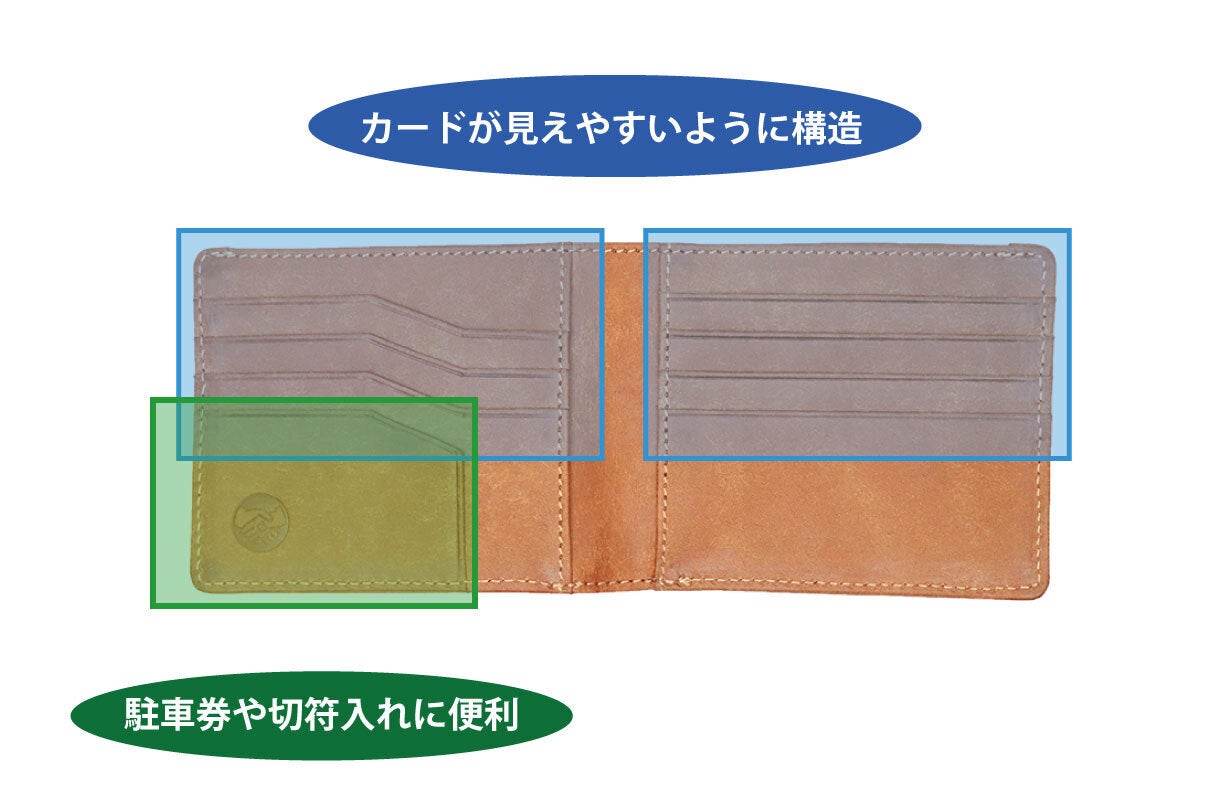【Mucca】は、お札・小銭・カードがかさばることなく、きれいに収納できる財布です。