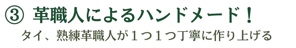 タイの熟練革職人がハンドメイドで丁寧に仕上げました。