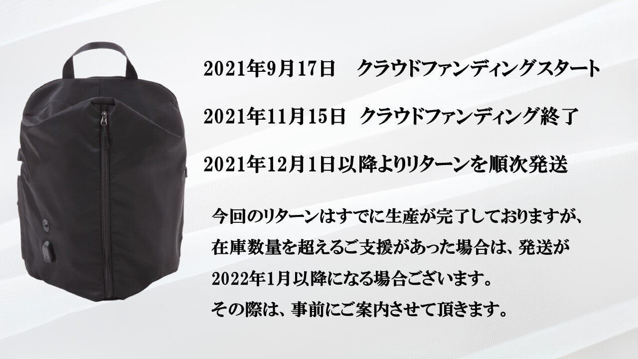 ●みなさまののご⽀援により量産効率、広告宣伝、物流のコスト削減を実現できた場合には、⼀般販売価格が予定価格より下がる可能性もございます。 クラウドファンディングの性質上、以上の注意点につきましてあらかじめご理解とご 了承いただいた上でご⽀援くださいますよう、よろしくお願い申し上げます。