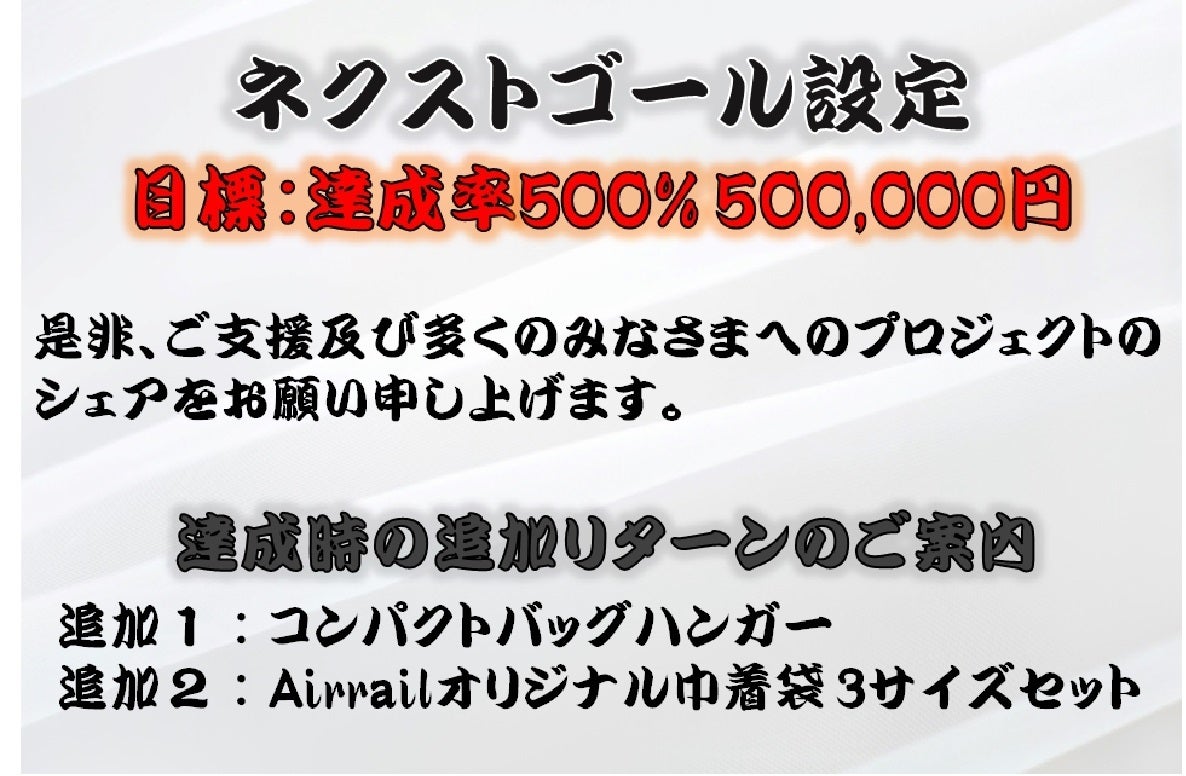 の「Airrail」を広めていきたいという強い思いがございます、是非、ご支援及び多くの