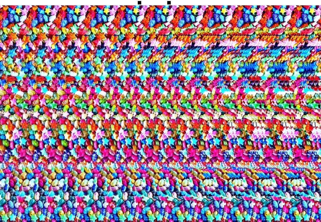 ステレオグラムは、そのままの見た目ではただの模様にしか見えず、目の焦点をずらして眺めなおすと、ある点で画像が浮かび上がってきます。この驚き、インパクトは、見ている人たちに強い印象を残します。ぜひ、ステレオグラム(3D隠し絵)の世界をお楽しみください。