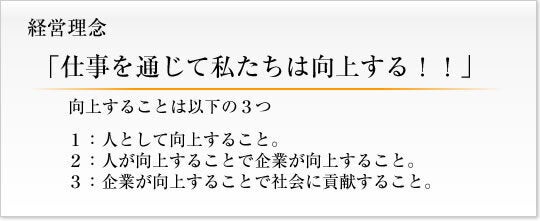 経営理念「仕事を通じて私たちは向上する!!」が元となっています。