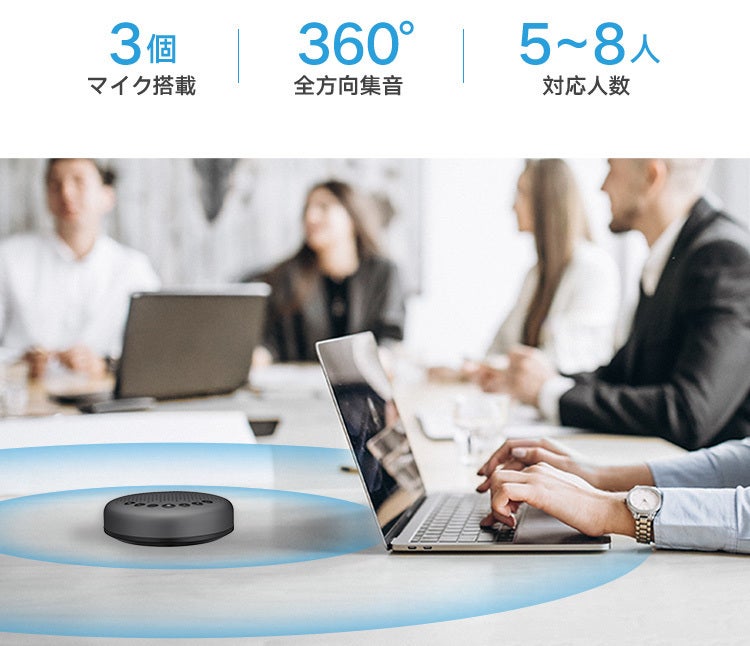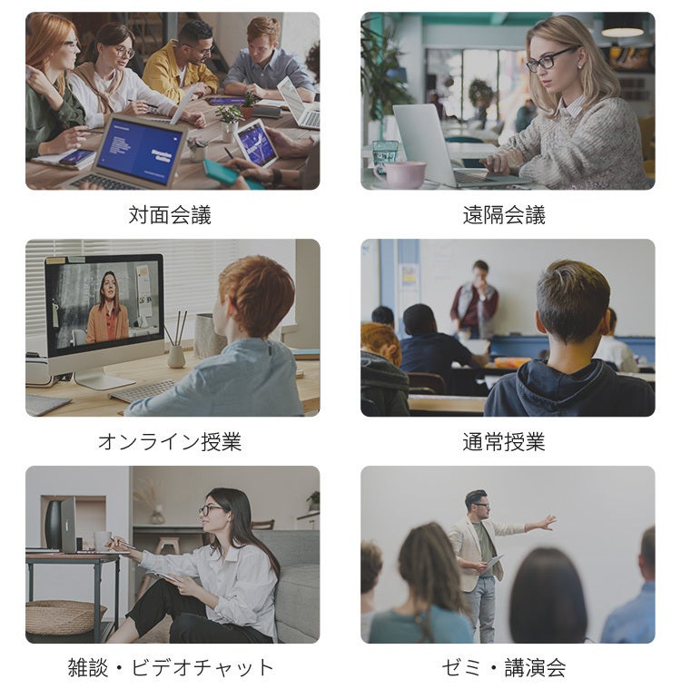 会議用スピーカーフォンですが、オンライン授業、通常授業、ビデオチャット、講演会などの場面にも適用されます。