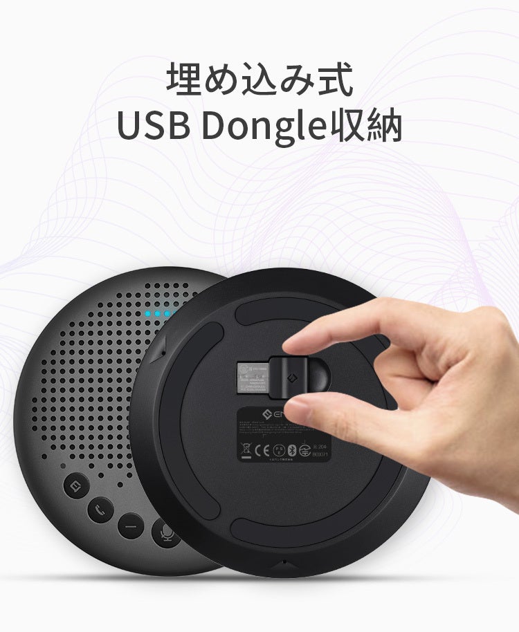 USBドングル付きでパソコンと接続すると自動的にペアリングを行うので、Bluetooth未搭載のパソコンに最適です。また、収納及び紛失対策として、USBドングルは本体に収納できる埋め込み式のデザインを採用しております。忘れ物、紛失の心配はいりません。