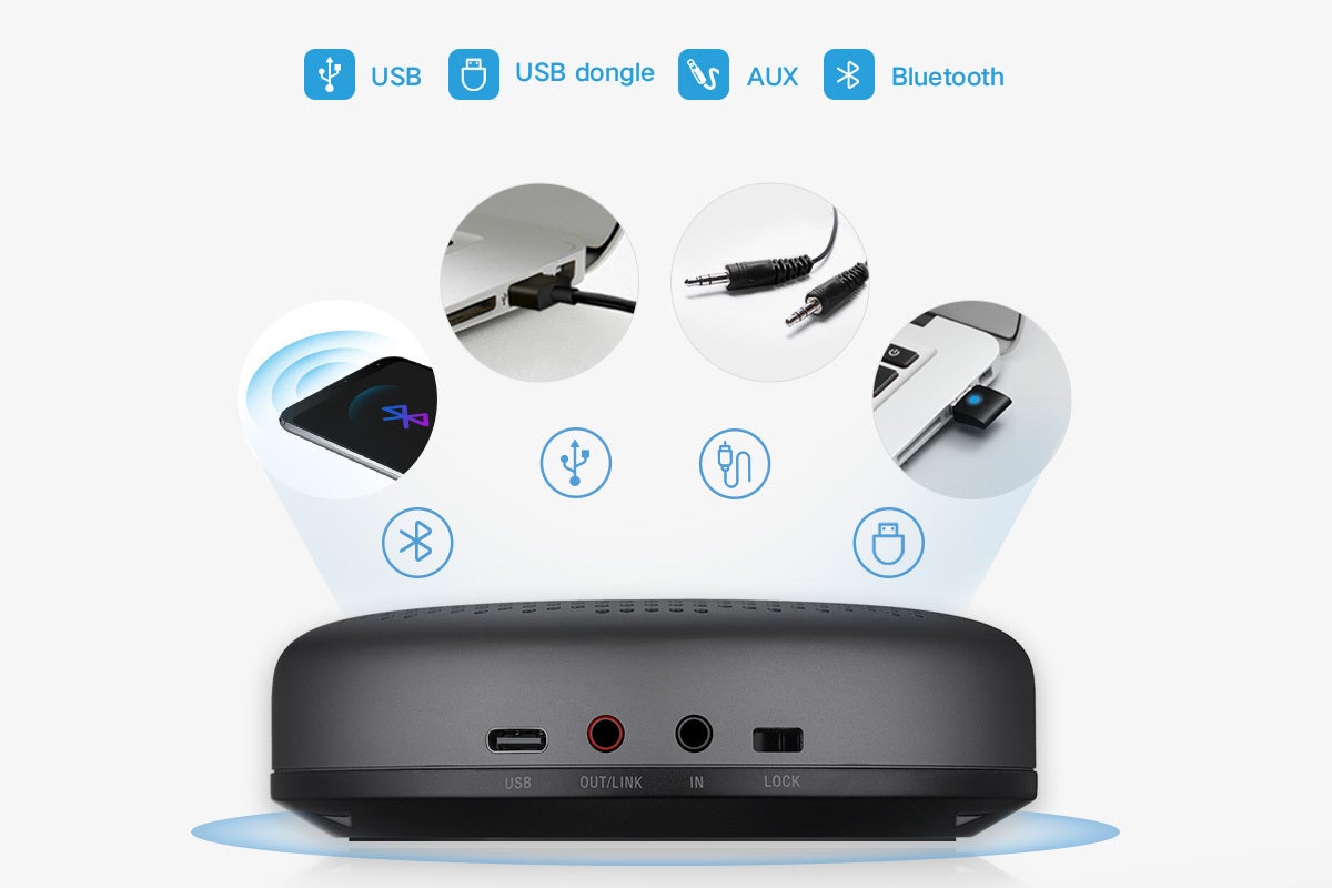 他社のスピーカーフォンと違い、「eMeet Luna」は一定範囲内(3M~5M)の声のみをキャッチし、増幅します。室外でも周りの雑音を遮断し相手にクリアな音質を送ります。