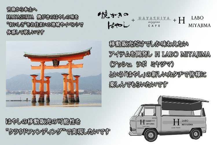 単なる機会損失を防ぐというだけではなく、生活に欠かせない場所でより身近に「はやし」を知ってもらい、「焼がきのはやし」「CAFE HAYASHIYA」でも出会ったことのない美味しさをお客様と共に作り上げて行きたい! と言う強い思いからキッチンカーの製作を考えました。