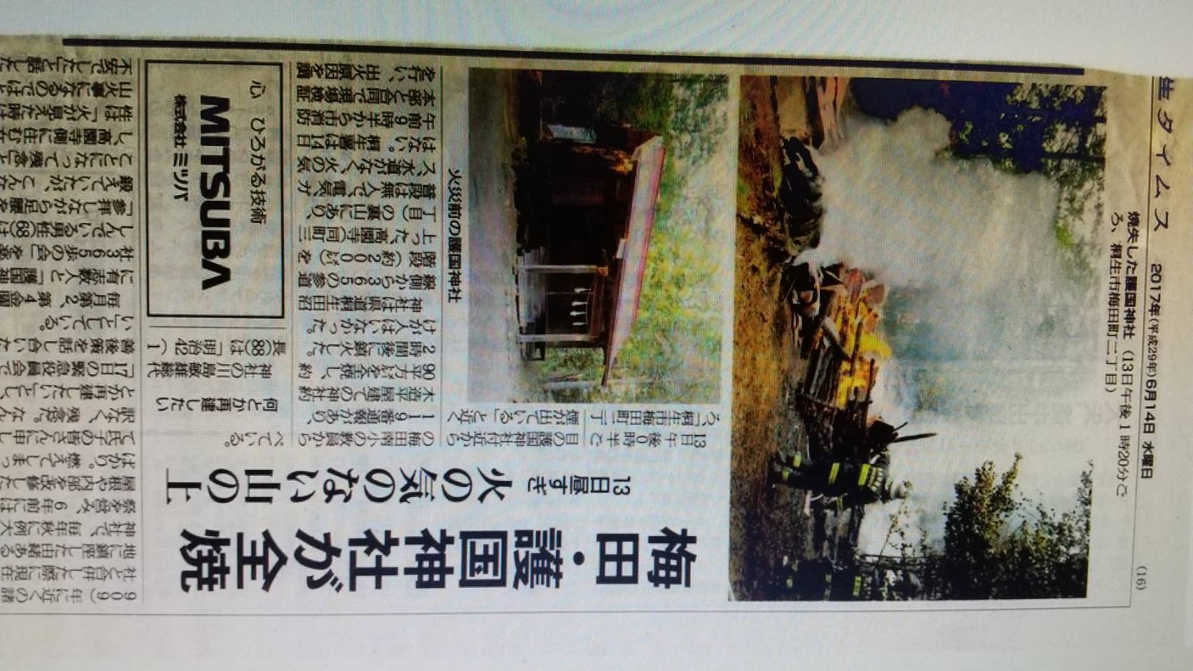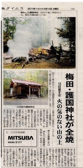 「放火」による全焼という耐え難い被害を受けました、 群馬県桐生市の「護国神社 」