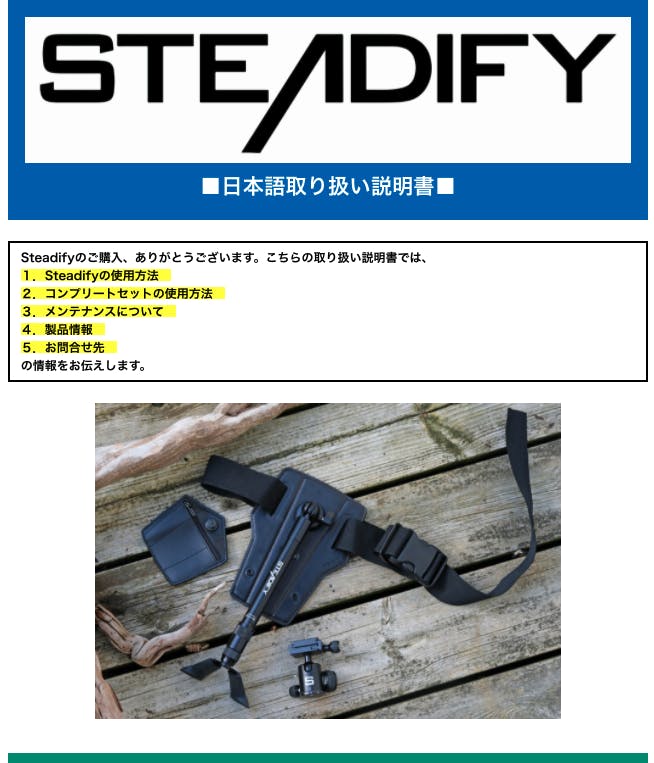 マニュアルって難しくて途中で読むのを諦めたくなるものも多いのですが、Steadifyのマニュアルは誰でも一回読めば理解ができるくらい簡単かつ丁寧に説明を入れております。