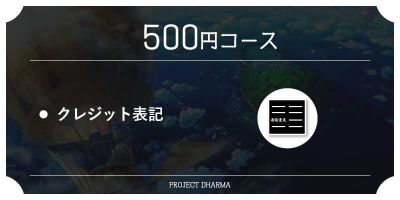 シンプルかつお手軽にご支援していただける、もっともリーズナブルなコースです。本作のエンドクレジットでご指定頂いたお名前を表記させていただきます。