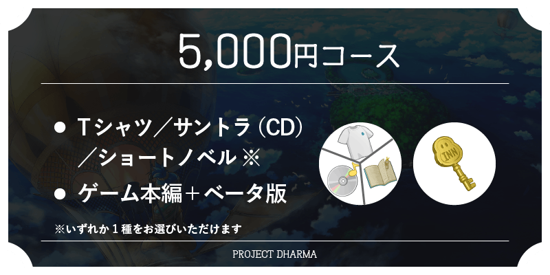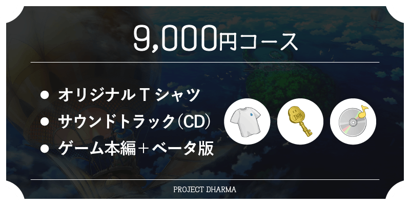 Tシャツとサントラ(CD)をセットにしたグッズメインのセットコースです。「やっぱりグッズがあると心躍るよね!」という方にオススメのコースです。