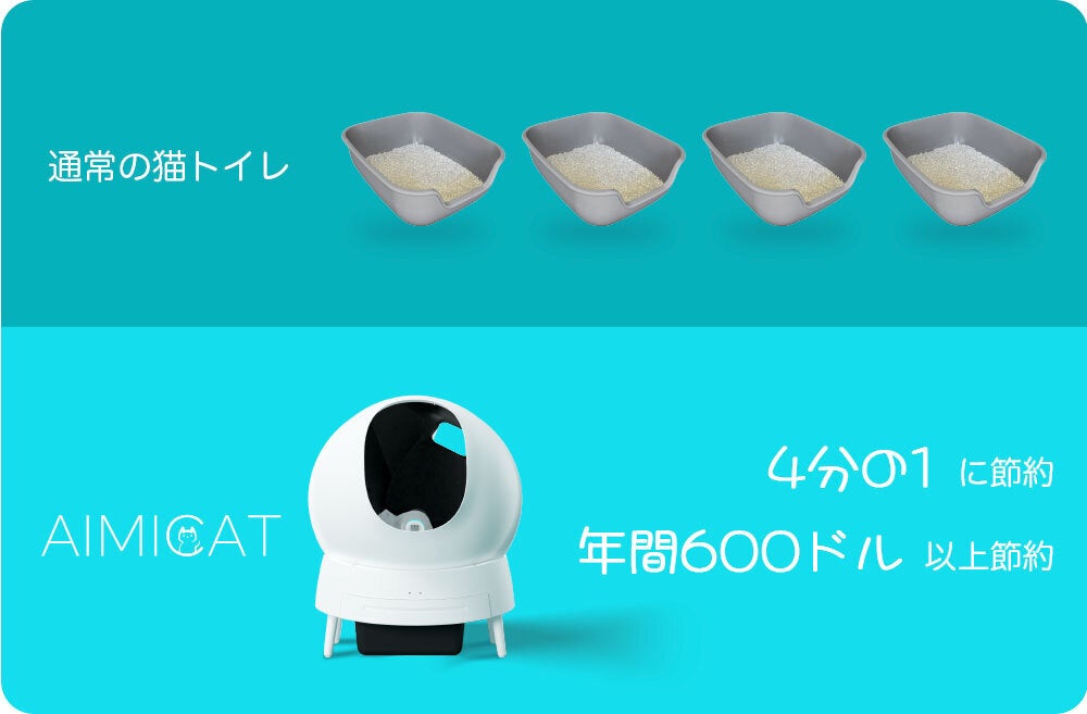 それに、Aimicatは通常のトイレにかかっていた費用を4分の1に抑えられます。そのため、1年で600ドル以上(6600円程度)もの節約が可能です。
