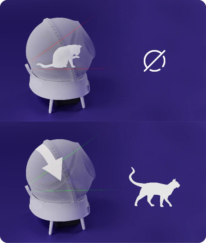 センシングシステムのよくある問題としては、圧力に依存していることが原因で不安定で適切に応答しないことが挙げられます。Aimicatでは、高精度で迅速に反応する信頼性の高い赤外線センサーを採用することでこの問題を解決しています。これにより、猫が内部にいるときは確実にその動きを検出できるため、動作不良を起こすことなく安心してご使用いただけます。