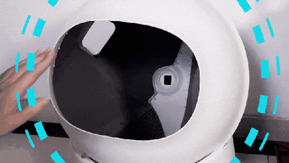 Aimicatは、猫の排泄物を自動的に取り除くだけでなく、複数の方法でその臭いも取り除きます。容器内の主な素材は、猫に優しい弾力性のある焦げ付き防止シリコンで、Aimicatの回転機能および臭気除去機能用向けに独自にデザインされたものを採用しています。柔軟性と弾力性が高いため、手触りが柔らかく、回転中やクリーニング中の残留物の排除が可能です。この機能は、当社による2,000回以上にも及ぶテストにより、その有効性が証明されています。