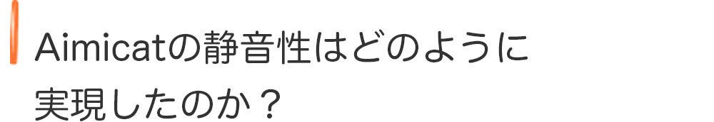 排泄物が通る場所の素材を柔らかいゴムにして、その経路のカーブを緩やかにしています。 くわえて、インボリュート歯車を採用することで、Aimicatの回転効率をスムーズにしています。そして、最も重要なポイントとして、古いモーターシステムを採用せず、Aimicat専用の新しいモーターシステムを開発しました。これを実現するために、世界最大のメーカーの1つと共同で開発を行っています。