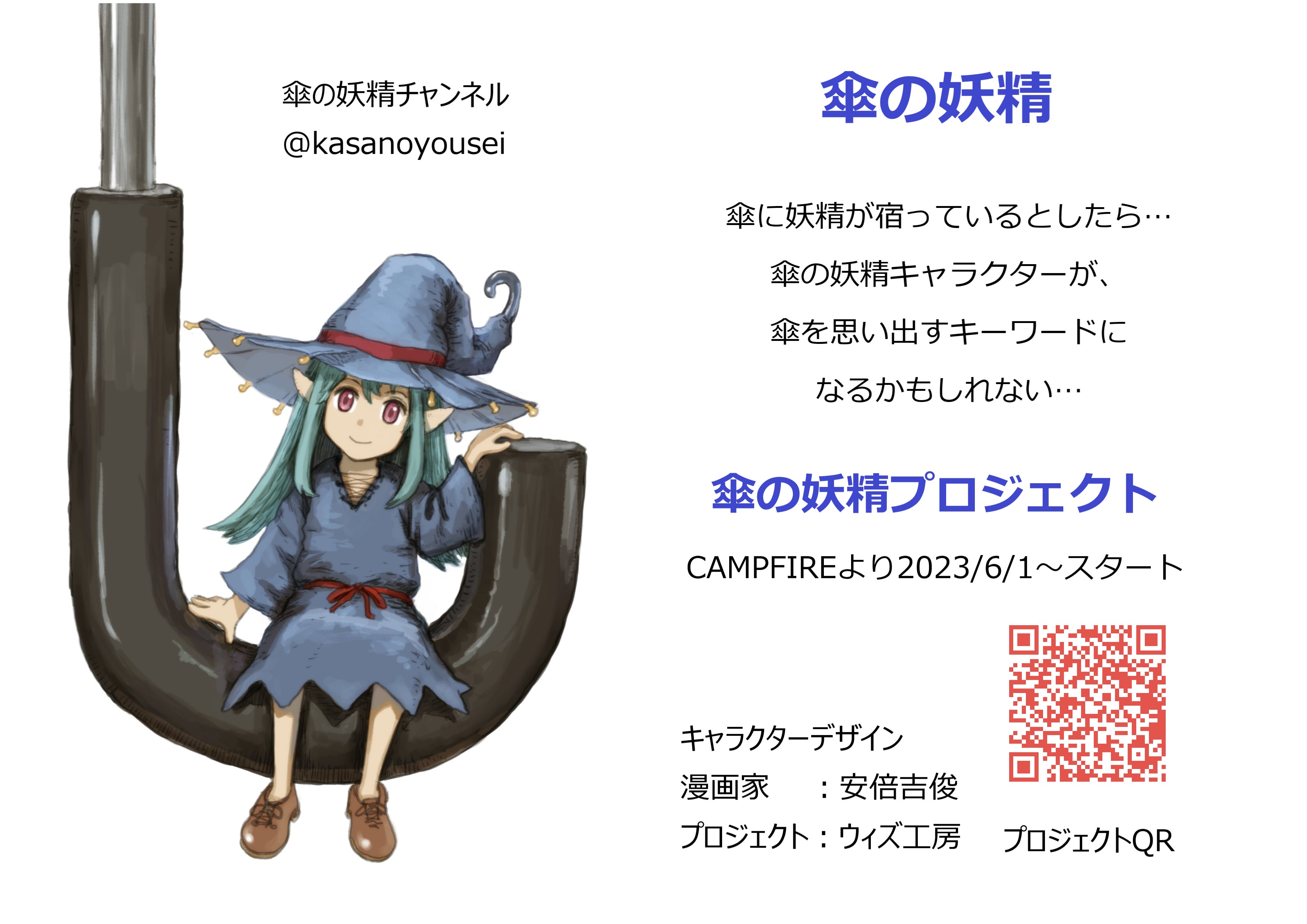 キャラクターを作りたいと考え、1年ほど前に弟で、漫画家の安倍吉俊に「傘の妖精」を1枚だけ描いて貰いました。
