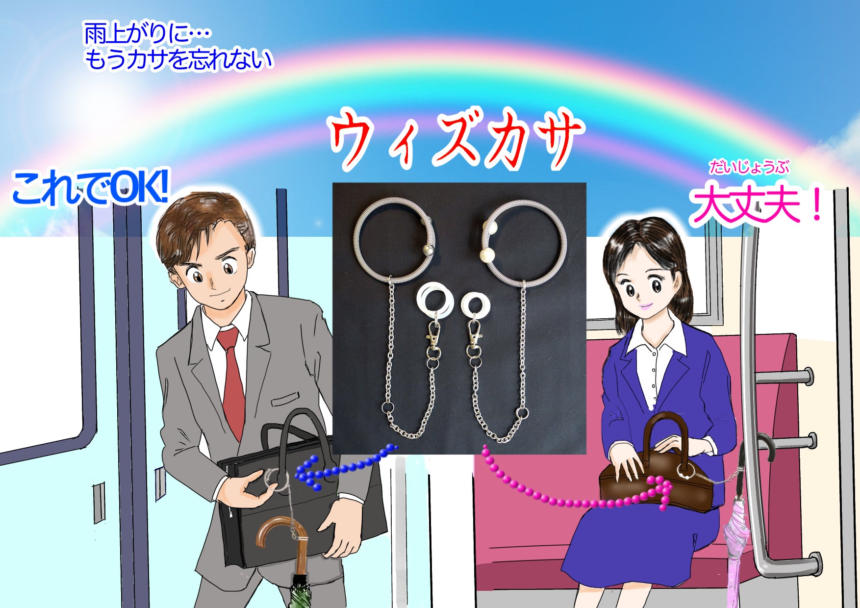 9月に入り、急に寒くなり、雨の日が続いています。【ウィズカサ】を傘に取り付けて、傘をさす時は、持ち手にアームリングをかけてください邪魔になりません。残り22日となりました。拡散の程、よろしくお願いいたします。