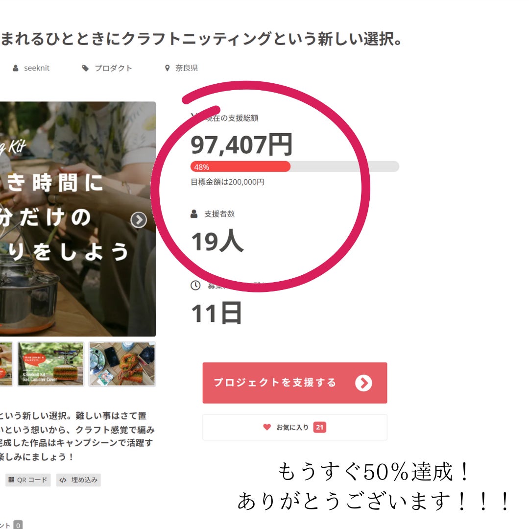 皆様にご支援いただき、目標金額48%を達成することができました!