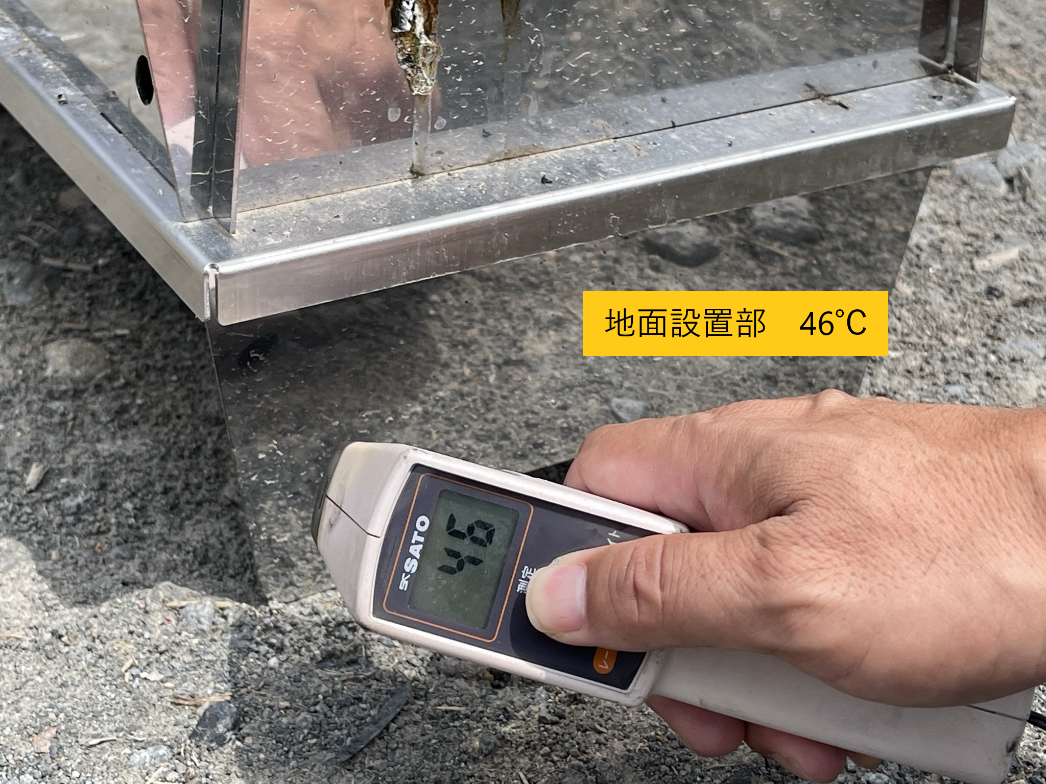 オーブン内部が250℃に達し、側面部が170℃へ上がっても脚部の温度は46℃に抑えられ地中の微生物や芝などの植物への燃焼によるダメージを防ぎます。
