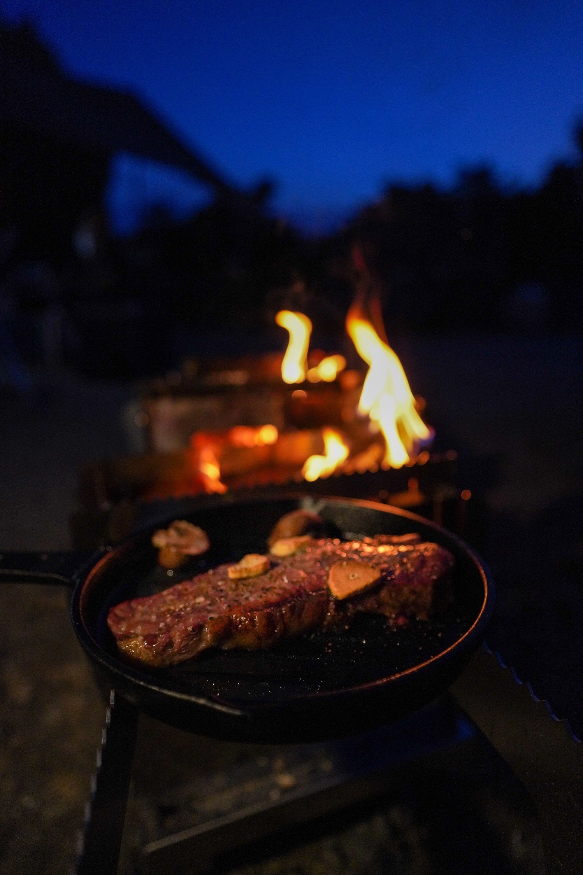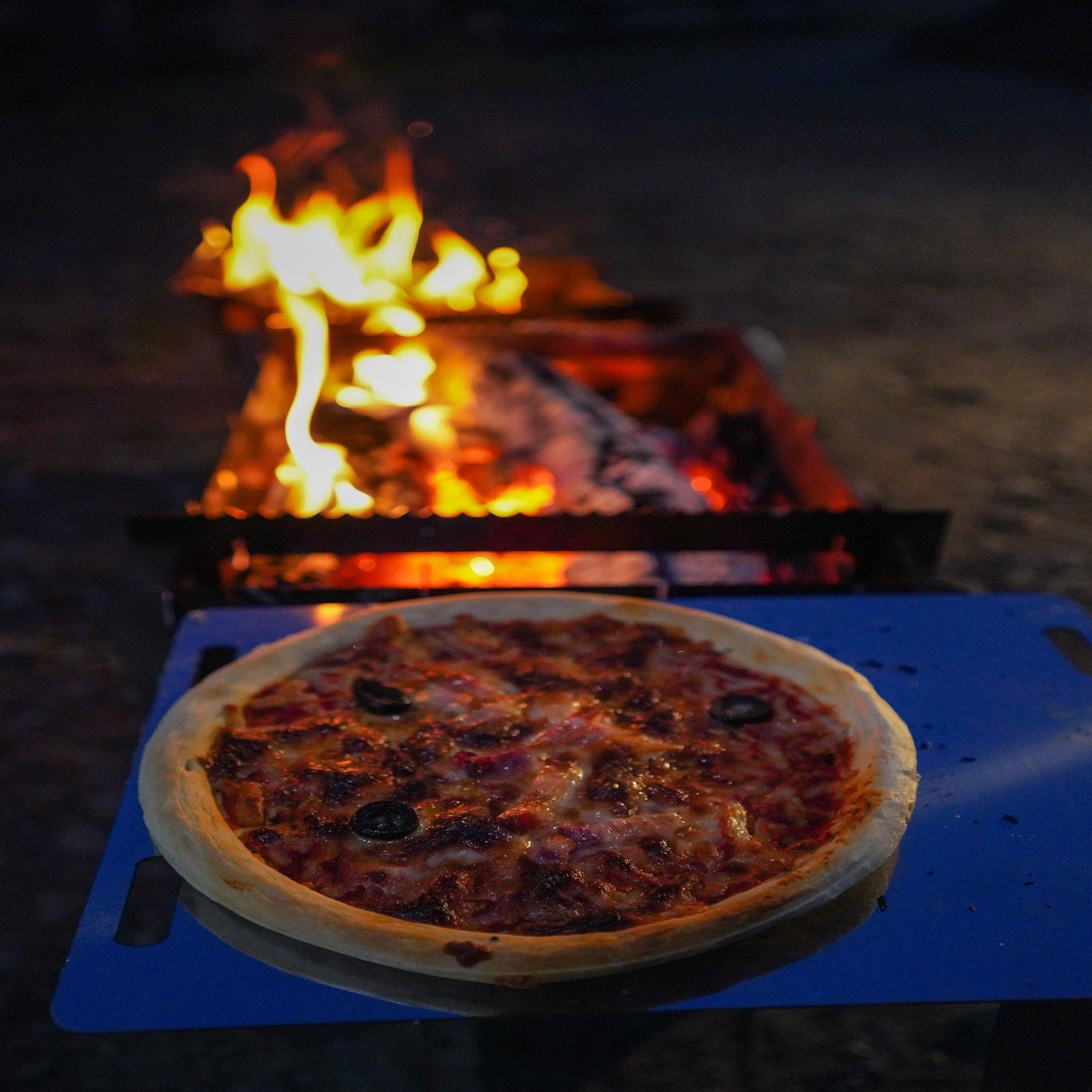 揺らめく焚火を楽しみながらのオーブン焚火台によりじっくりと料理をしてピザやステーキ、アヒージョなどを楽しむ贅沢なひと時をお楽しみいただくことができます。