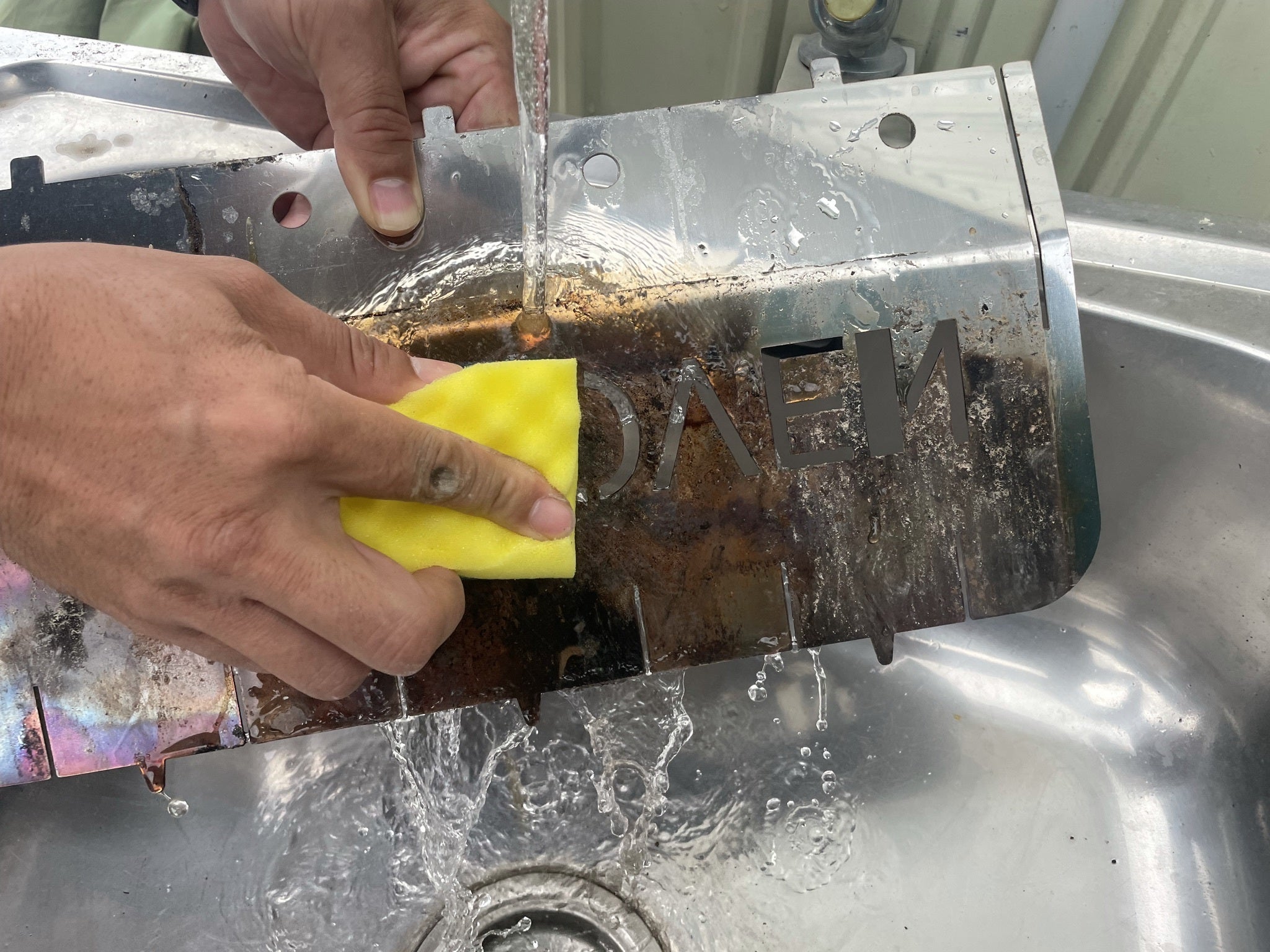 素材はステンレスSUS430のため使用後は水洗いが可能です。お手入れ時は柔らかいスポンジ等で水を流しながら洗浄をしてください。