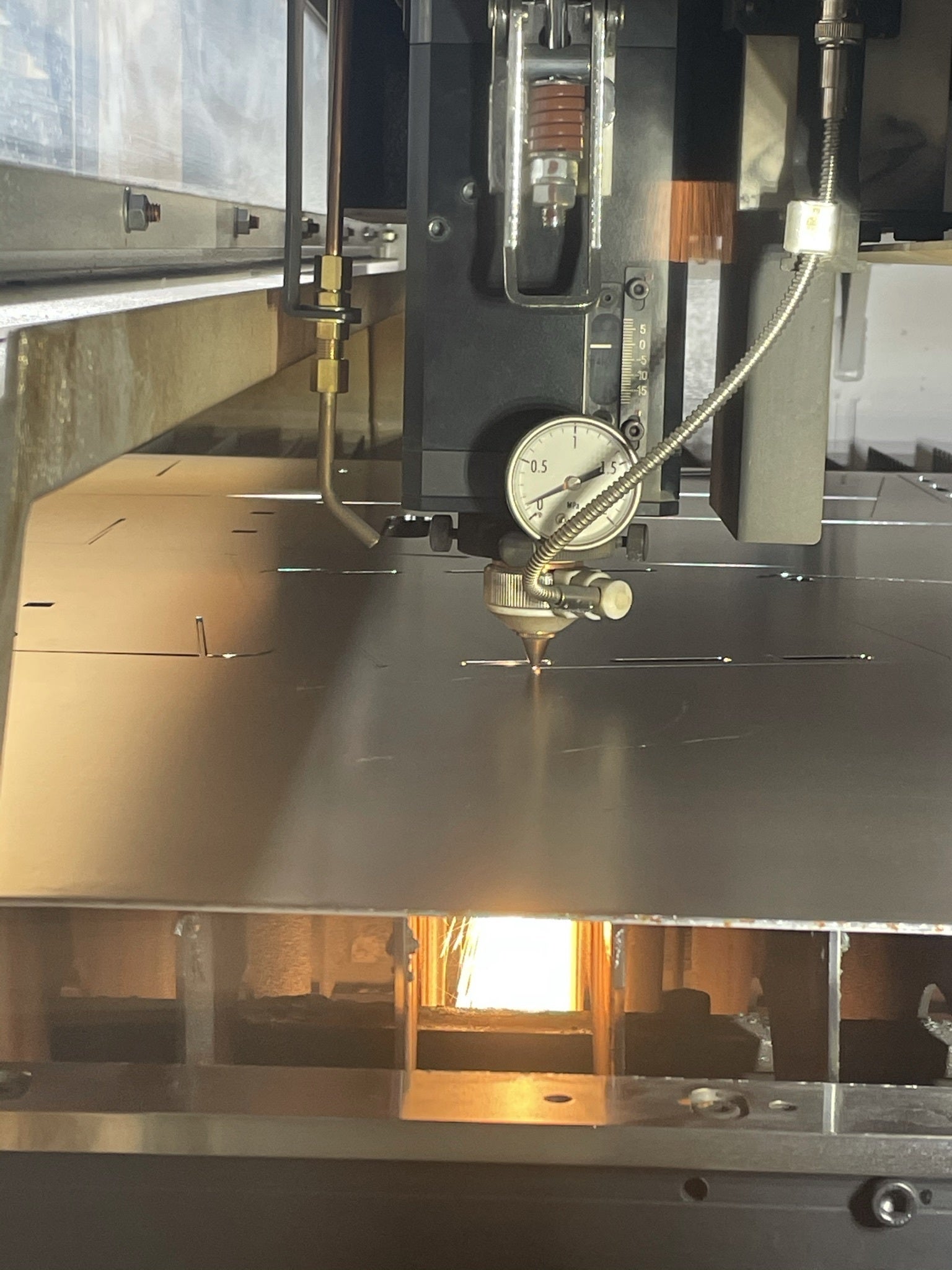 得意とする分野は9台のロボットによる溶接加工と2.5KWのレーザー加工機による精密切断加工を行っております。