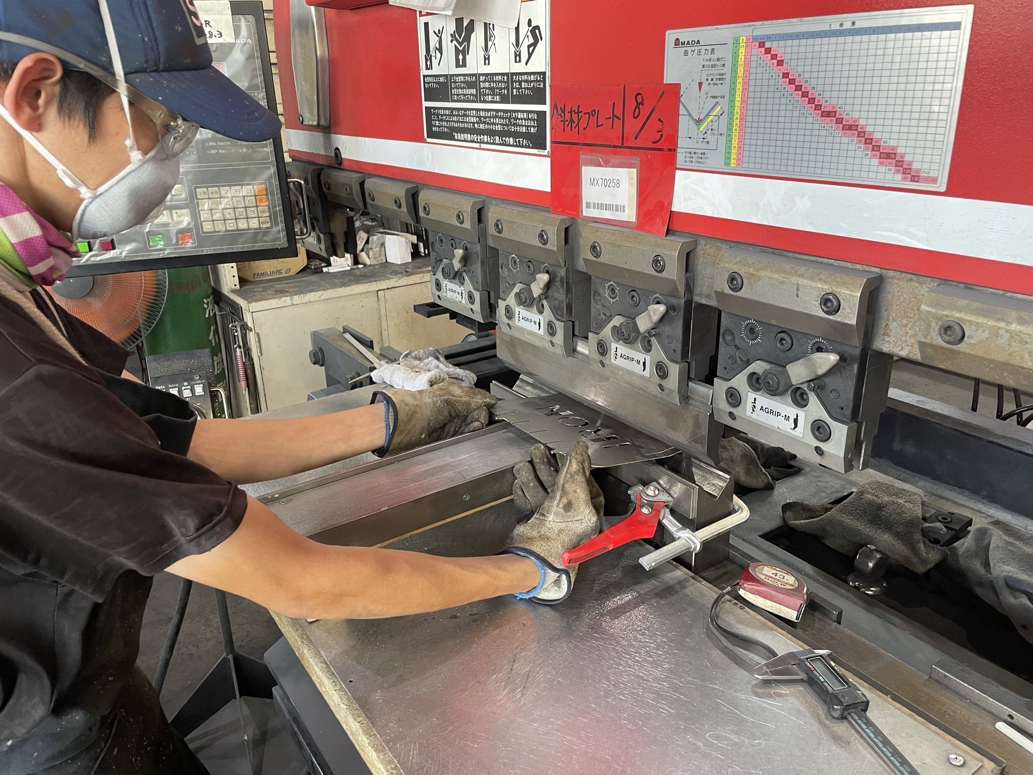 当初開発にとりかかった時点では素材はSS400鉄で想定しておりました。試作の際には強度も考え2.3㎜の厚さで仮制作を行い実証実験を行いました。