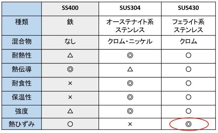 製品仕様:素材 ステンレスSUS430 厚さ1.5㎜