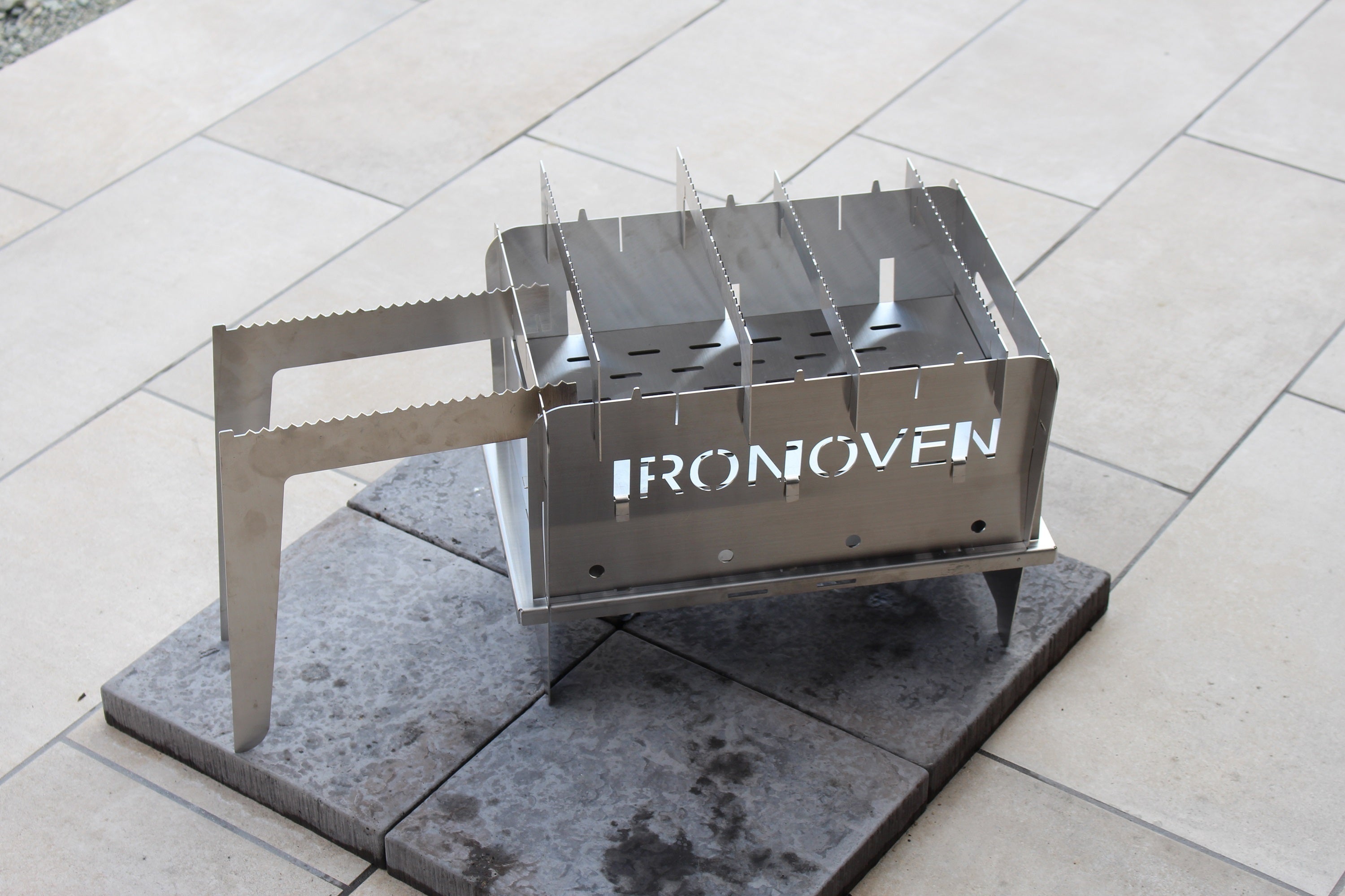 そこで「焚火をしながら調理をしてしまおう。」「どうせならピザでもグラタンでもできちゃうオーブン機能にしてしまおう」といった流れで「持ち運びができるオーブン焚火台」を開発いたしました。
