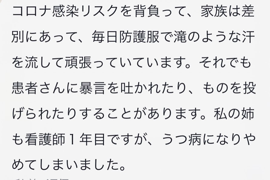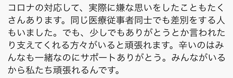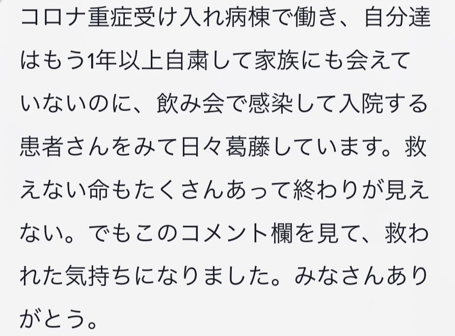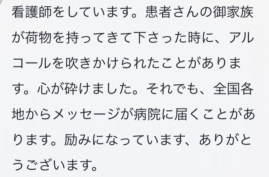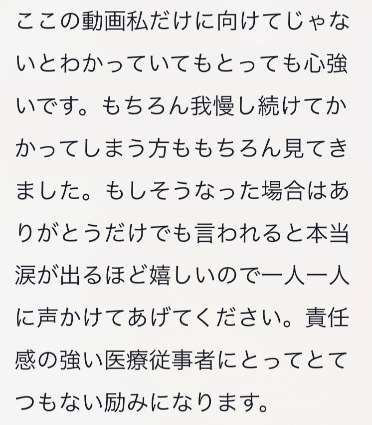 以下は、実際に届いた医療従事者のコメントです。(一部掲載させて頂きます)