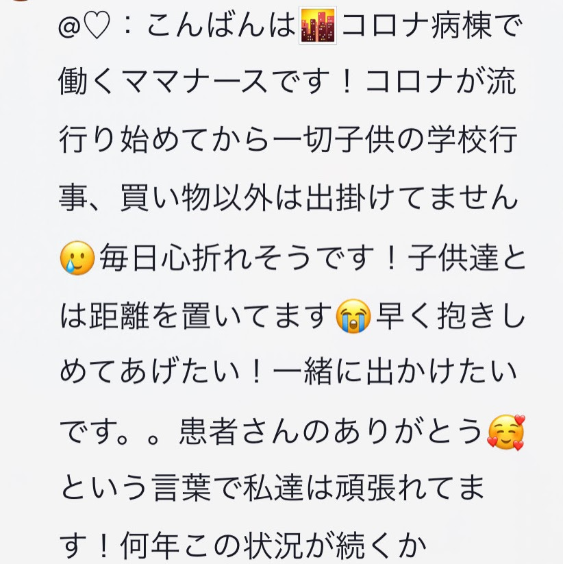 以下の Instagramのアカウントにて、頂いた医療従事者への感謝のメッセージを投稿します。