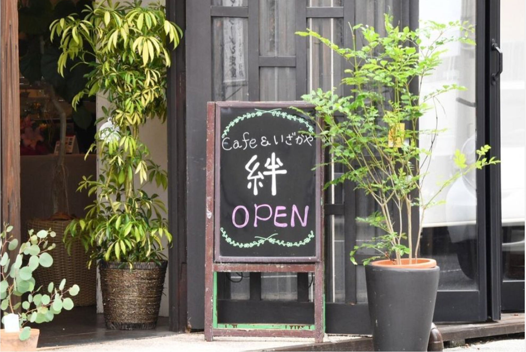 「café&いざかや 絆」は、2020年5月にリニューアルオープンし、名前の通り、昼はカフェとしてランチを、夜は居酒屋としてのお食事をご提供させていただいています。