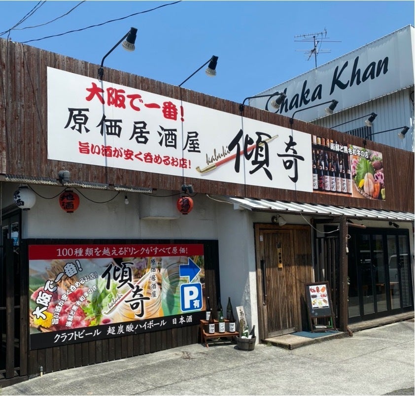 「café&いざかや 絆」は、もともとは、この岸和田の地で長らく続いていた「原価居酒屋傾奇(カブキ)」という居酒屋でした。