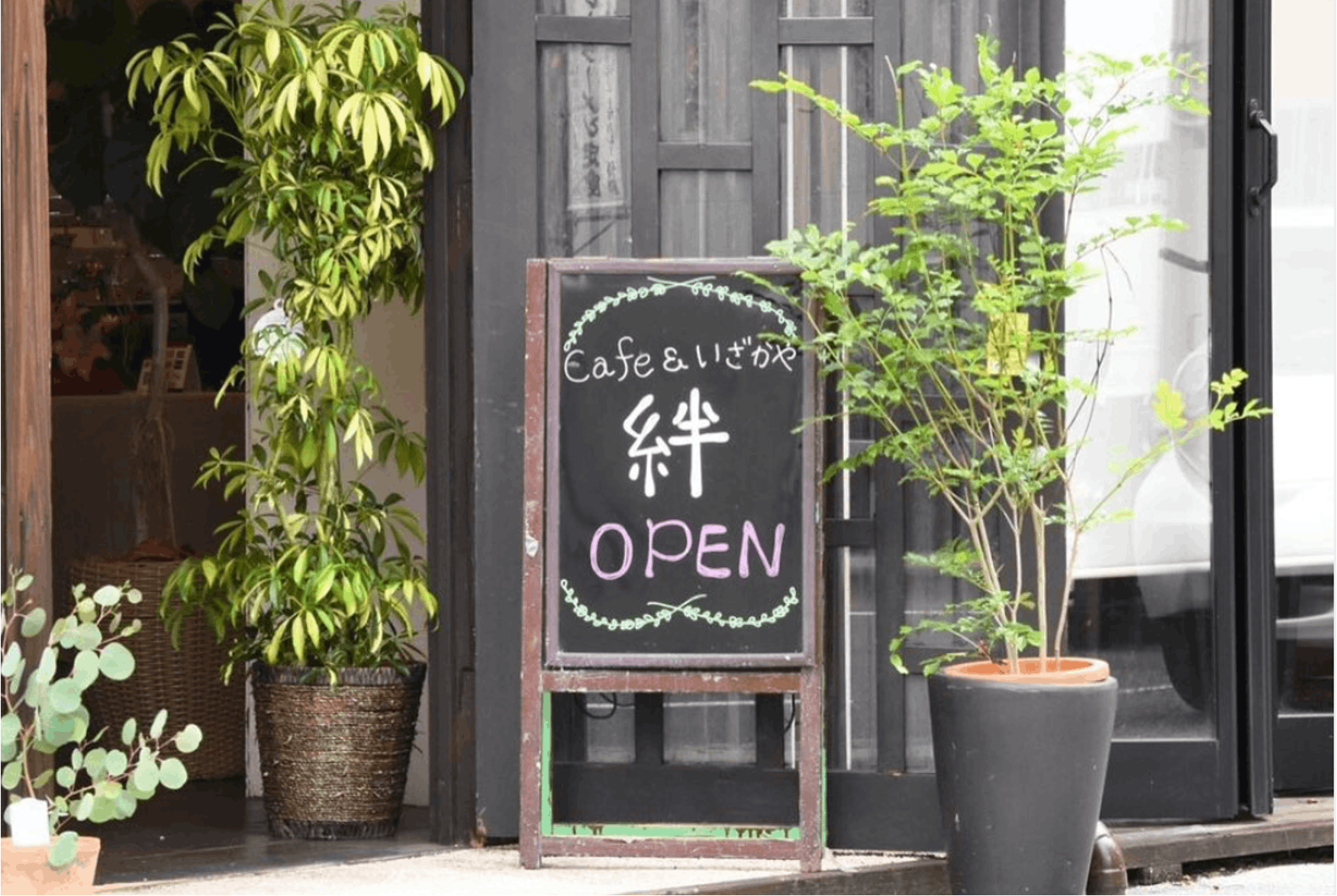 私は、大阪府岸和田市、国道26号線沿いに「café&いざかや 絆」というお店を経営しています。