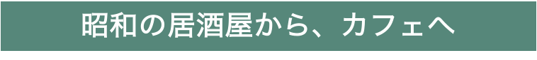 軒下には赤提灯、フロアいっぱいに敷きつめた座席、いかにも「昭和の居酒屋」であった店内を、座席数を半分まで減らし、内装を変え、ゆったりと過ごせるカフェの空間へと変えたのです。