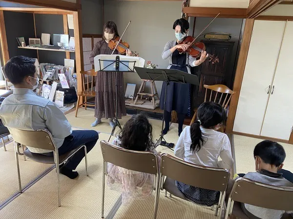 ②ヴィオラ演奏家「箕浦理恵」さんをはじめとする合計4名の気鋭の弦楽器奏者をお招きして、少人数でのふれあいコンサートを開催する