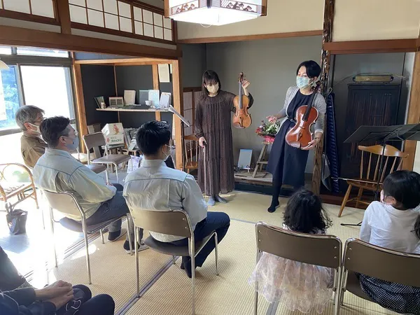 ⑤木造建築と弦楽器の音の共鳴によって、通常では体験することのできない至近距離で、プロの演奏家の音に触れていただくことができます。肌で感じる生の音が作り出す、本物の芸術の素晴らしさを実感してください!