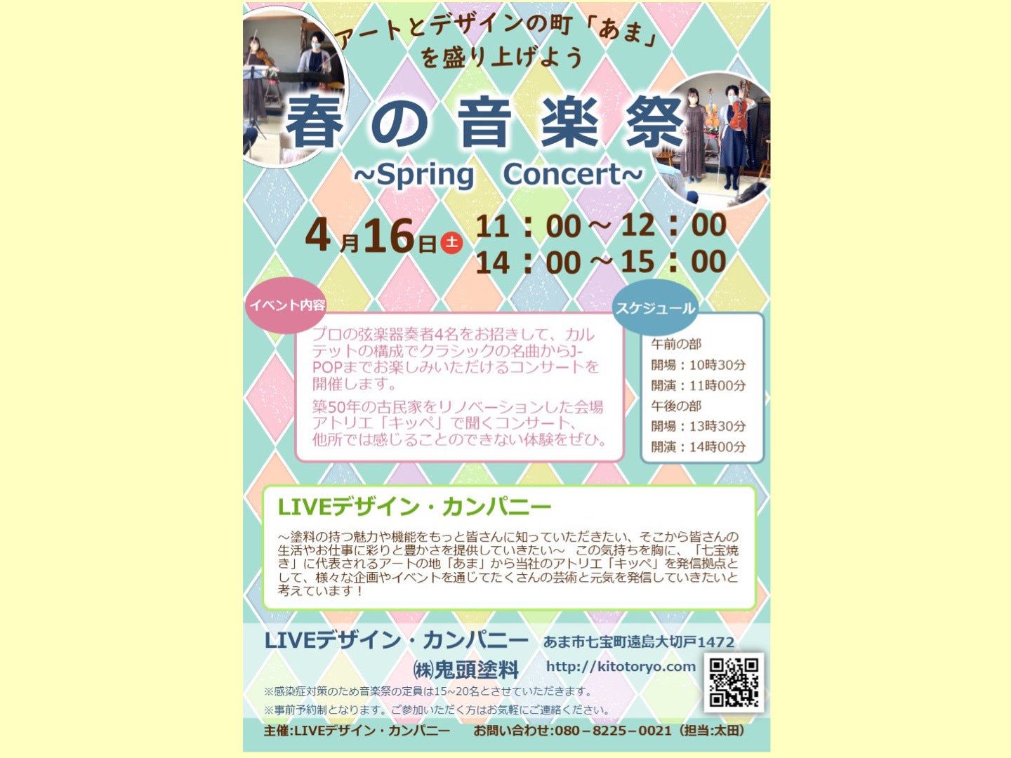 ③コロナ禍だからこそ、感染症対策を万全に施した会場で少人数開催となります、地元で安心・安全な環境で音楽に触れてもらいたい