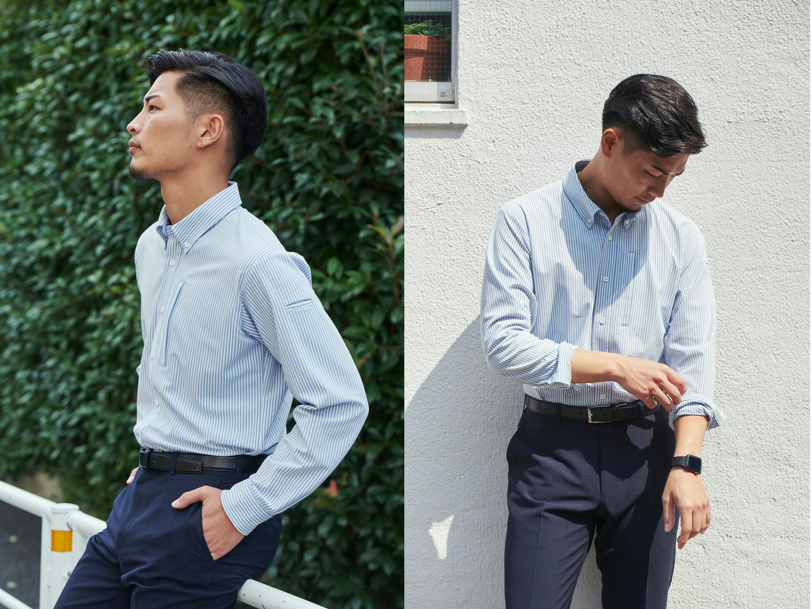 現代では、ビジネスシャツと作業着用ワークシャツが完全に二極化しています。ビジネス面での清潔感、信頼感と、作業面での実用性を両立できるシャツを。