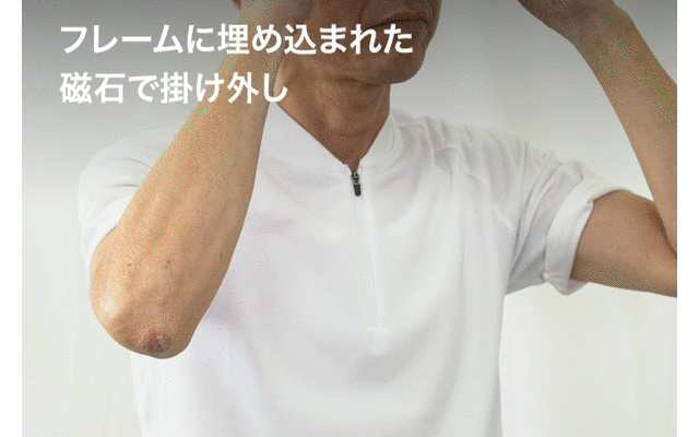 【EXE(エグゼ)】は、使用しないときには「首に掛けておける。」というのがクリックフレームの大きな特徴でした。今回は遠近両用レンズを入れ、メガネを外さずに遠くも近くも見えるというレンズの特性を生かし、あえて、「外さなくても良い」とした逆転発想の商品です。