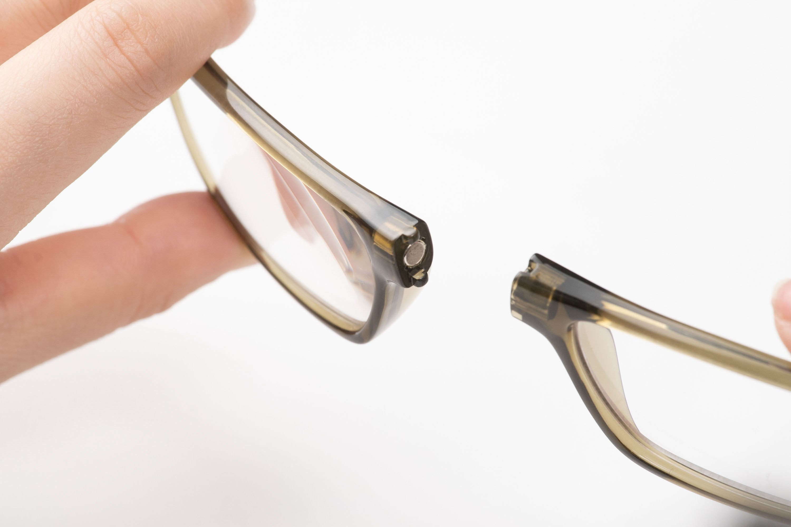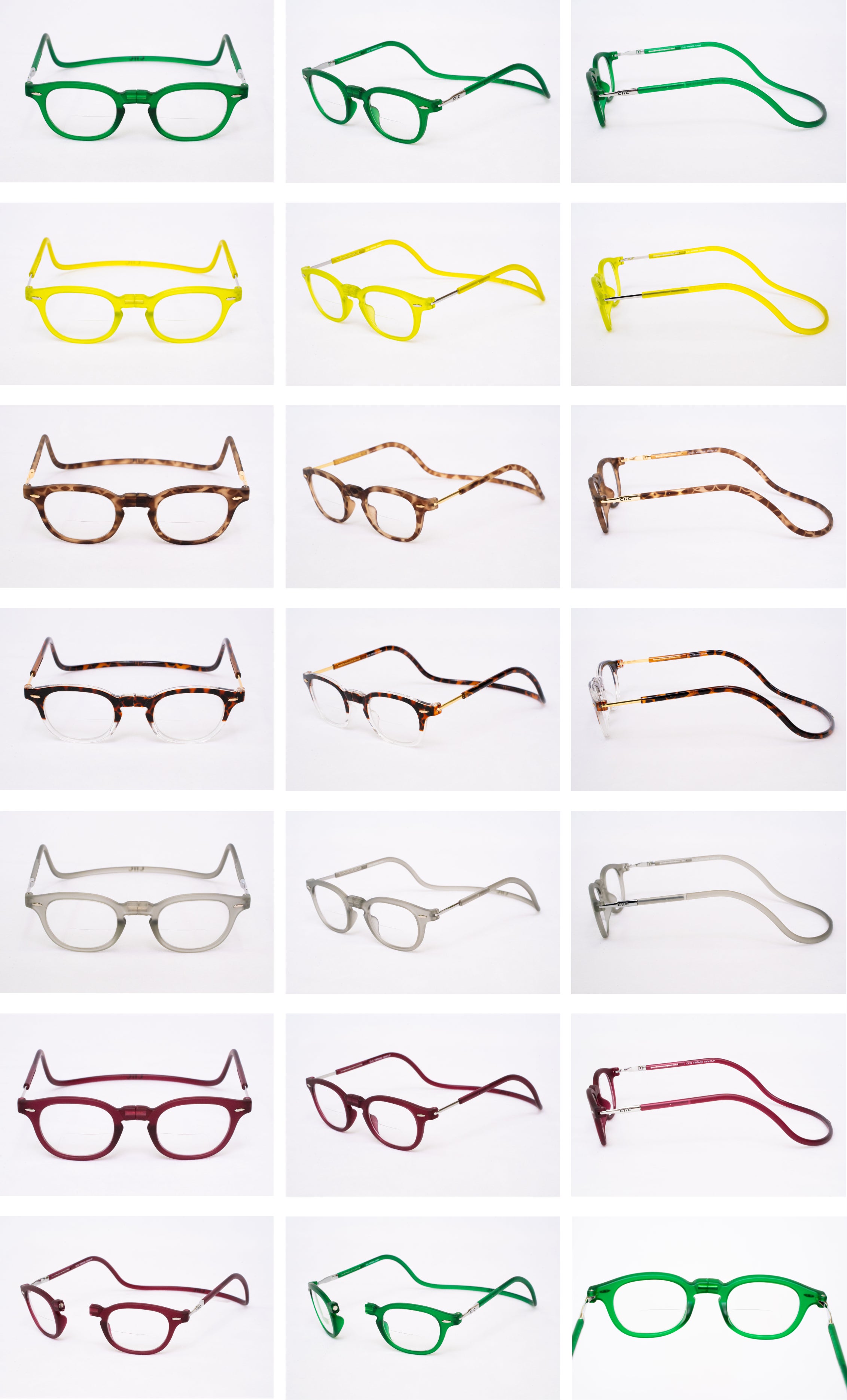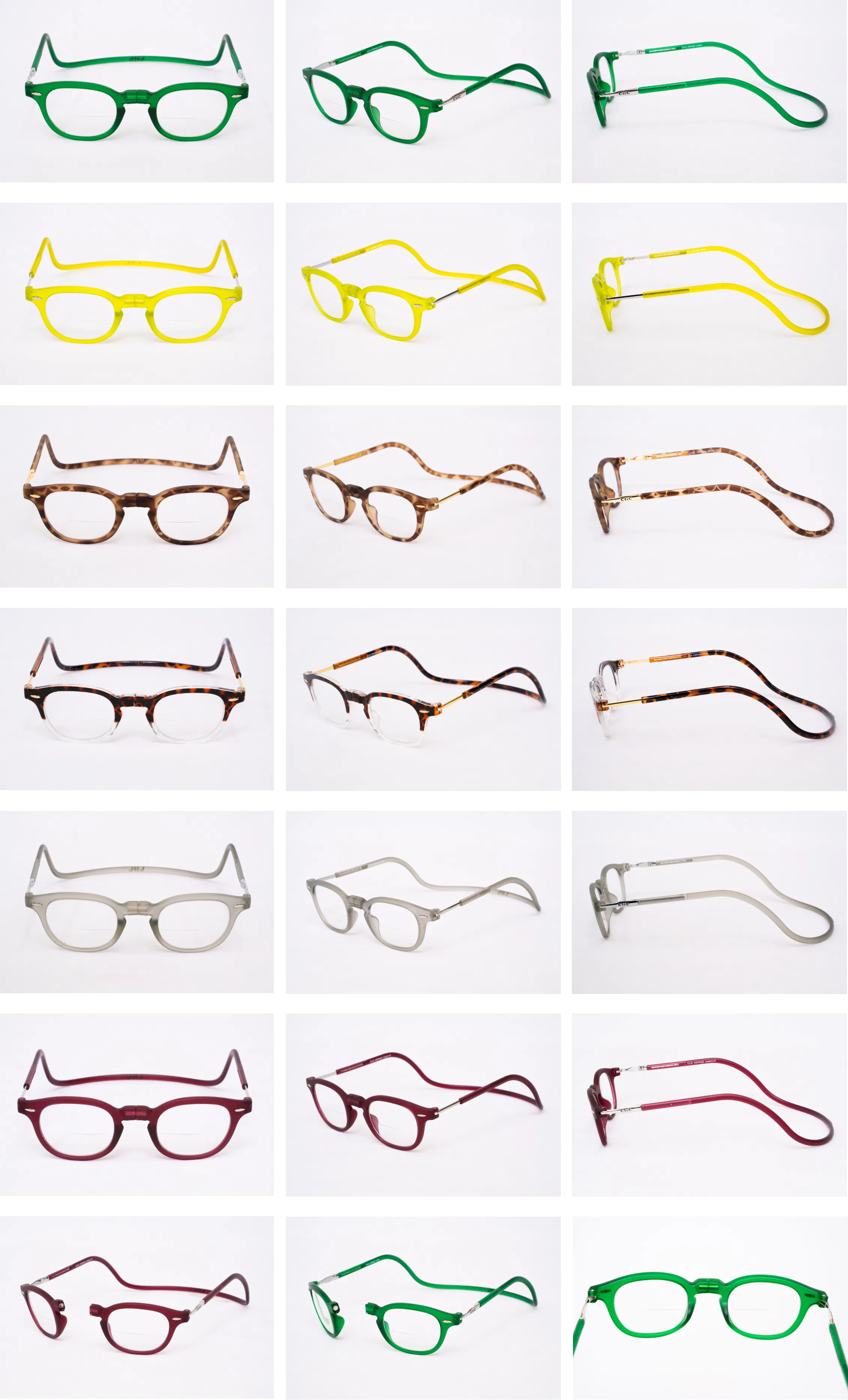 私たちが日本総販売元として販売を行っている、USA発ブランド【CliC(クリック)】は、フレームに埋め込まれた磁石でメガネの掛け外しを行い、使わないときには首にかけておけるという、従来のメガネの概念を覆す、画期的な構造を持ったメガネフレームです。