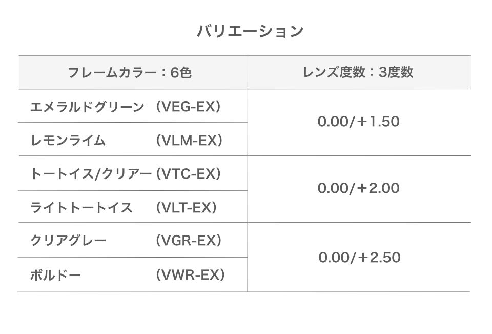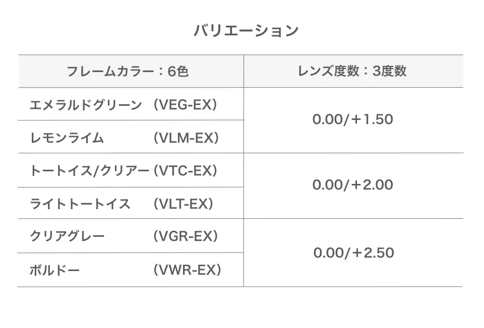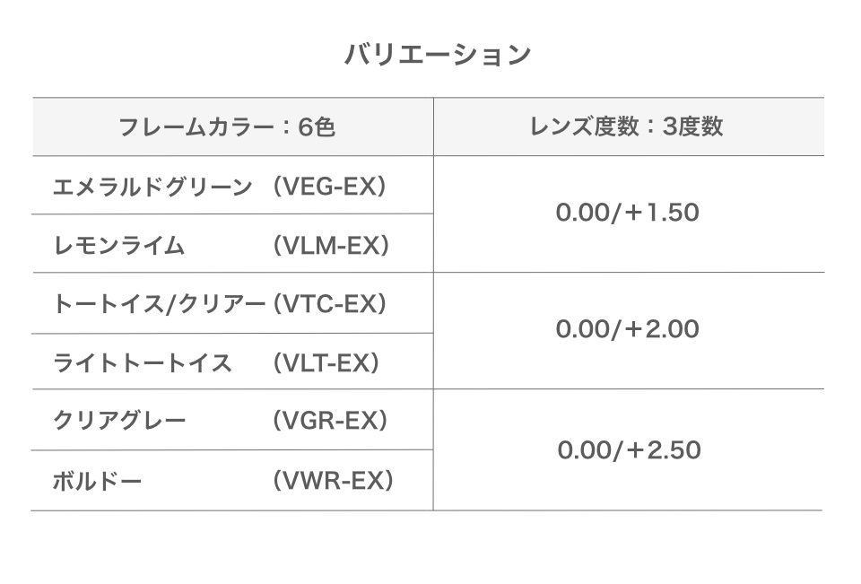 トートイス/クリアー(VTC-EX)/クリアグレー(VGR-EX)/ボルドー(VWR-EX)
