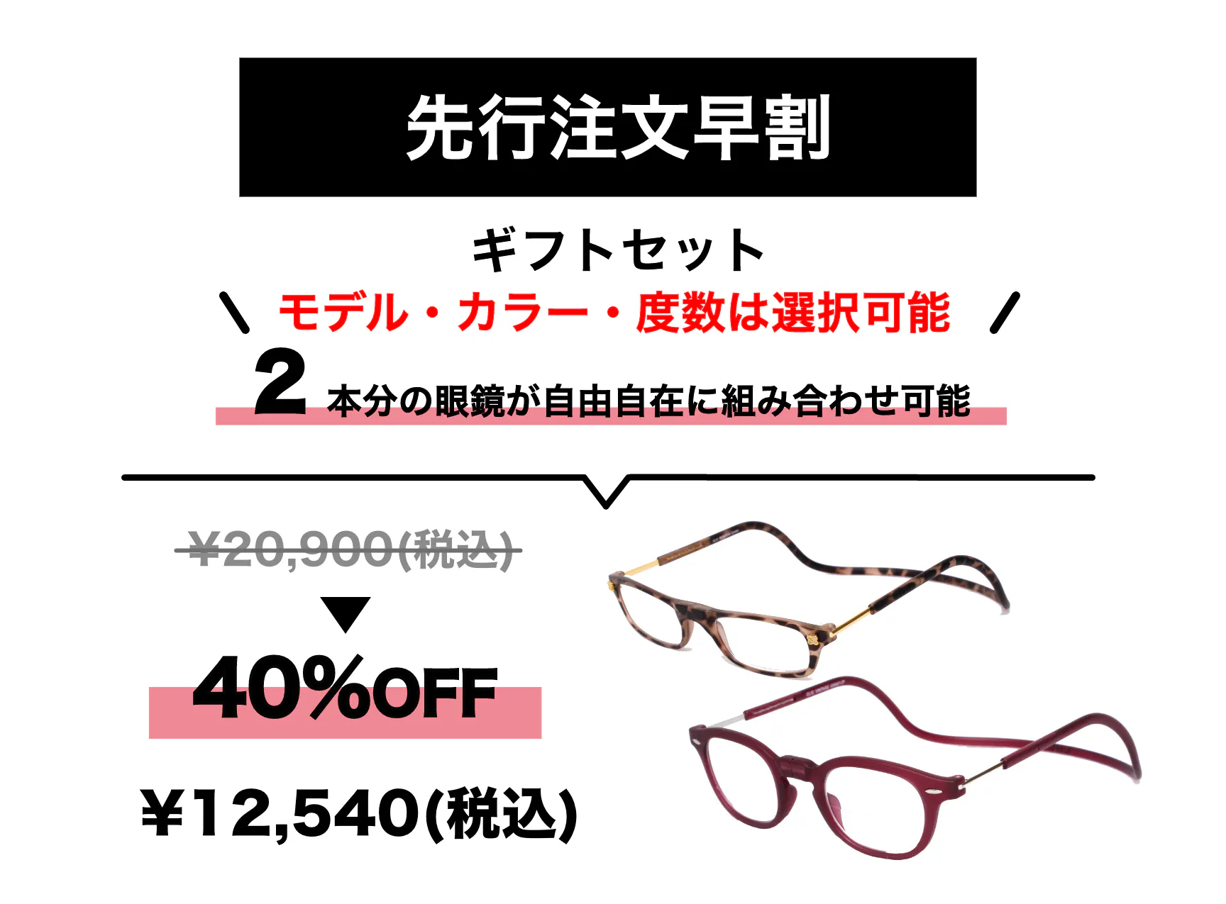 あなたの大事な方に老眼鏡2本を贈りましょう。