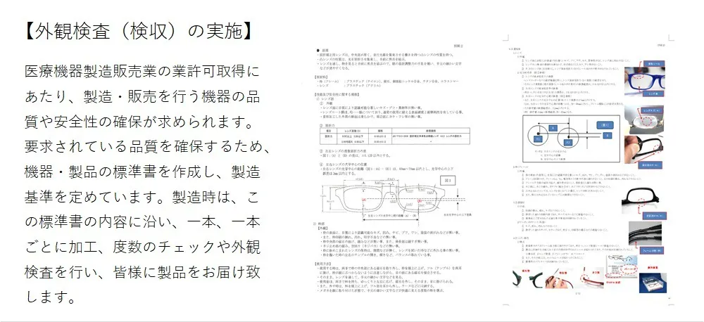 また、偏光レンズの製造以外にも、自社ブランドのサングラスや老眼鏡、他社様のOEM商品なども手掛けており、「眼」に関する多岐の商品の取り扱いを行い、今日に至っています。