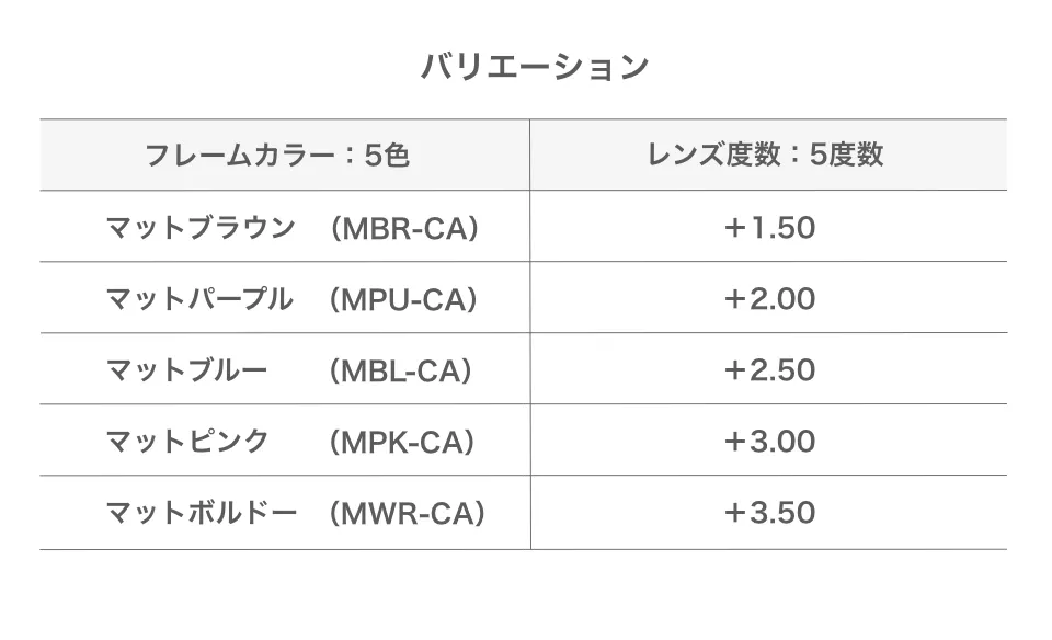 マットブラウン(MBR-CA)/マットピンク(MPK-CA)/マットボルドー(MWR-CA)