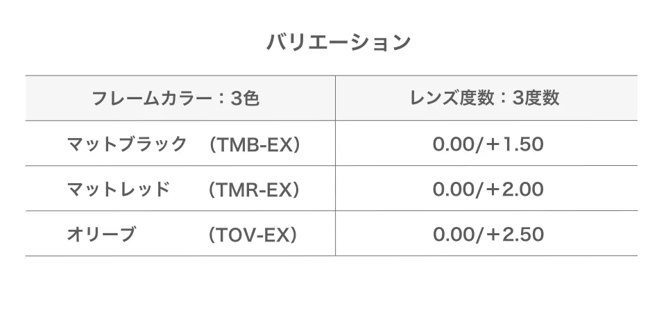 マットレッド(TMR-EX)/マットブラック(TMB-EX)/オリーブ(TOV-EX)