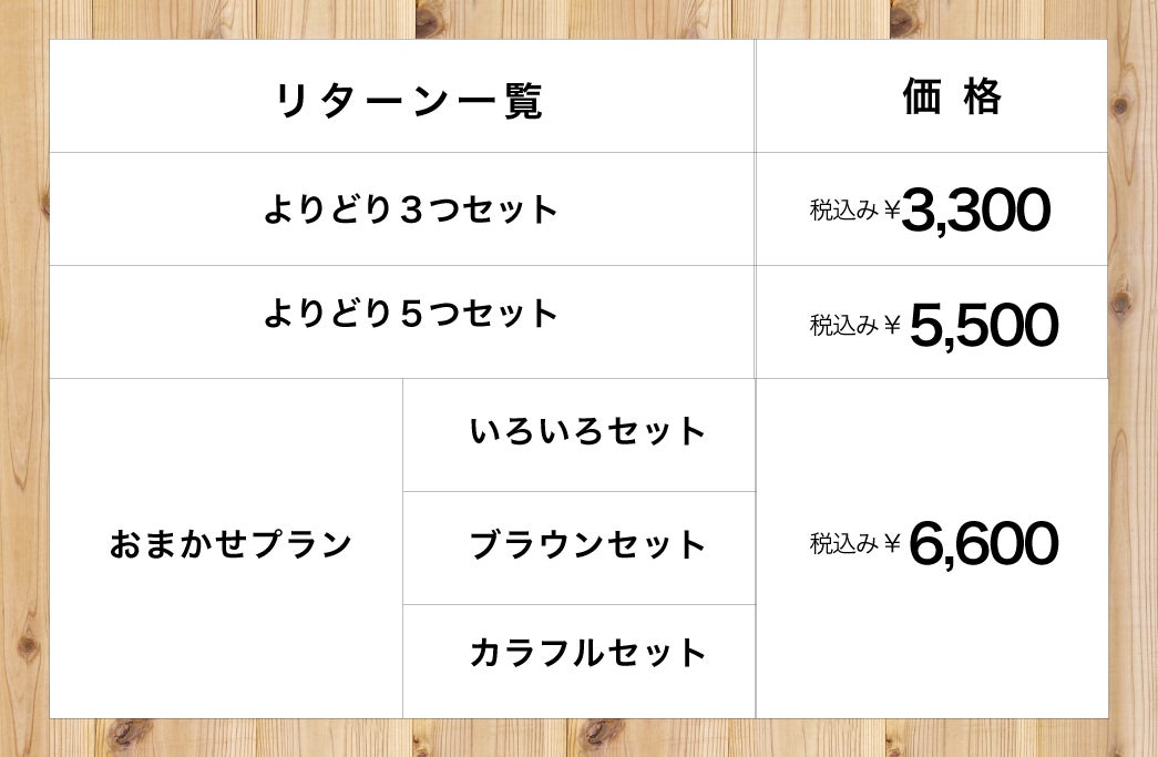 リターンとしては3つのプラン(全5パターン)をご用意しております。