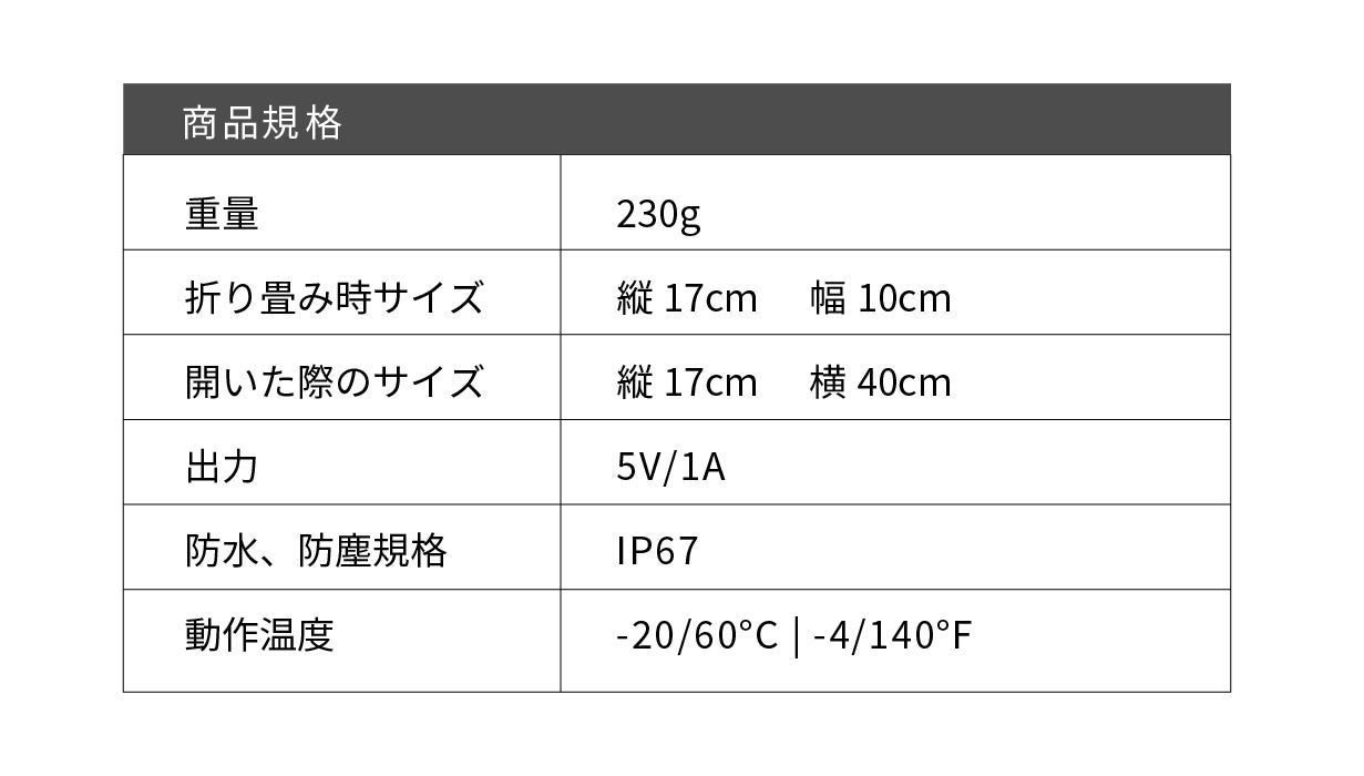 そして、すごく軽くて持ち運びが便利な大きさ。重量・サイズ・効率が大幅に良くなり、ホントに効率的なソーラー充電器です!