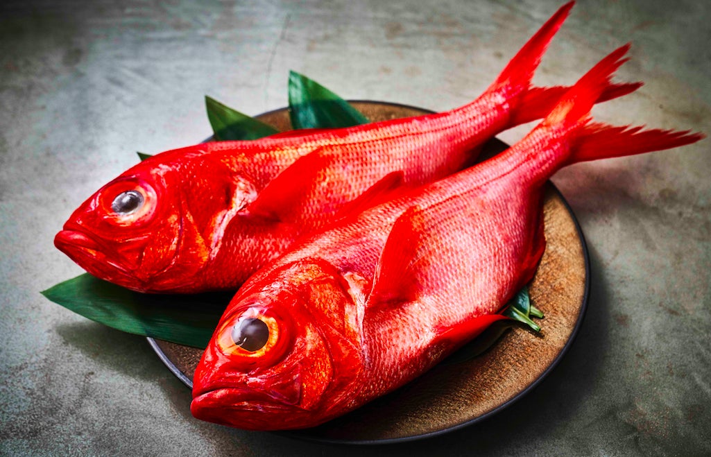 目の前に現れたのは、眩しいくらいの真紅の食材「金目鯛」でした。