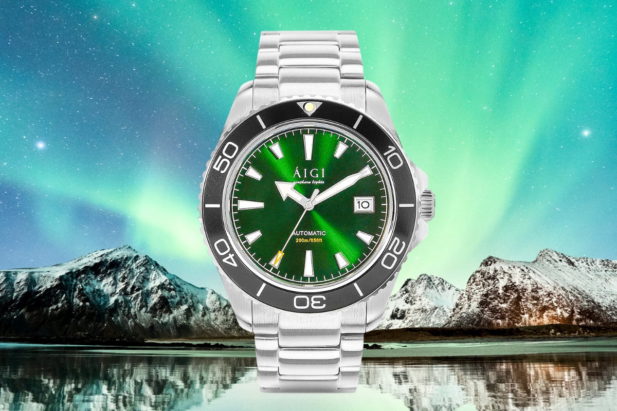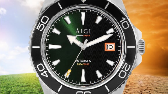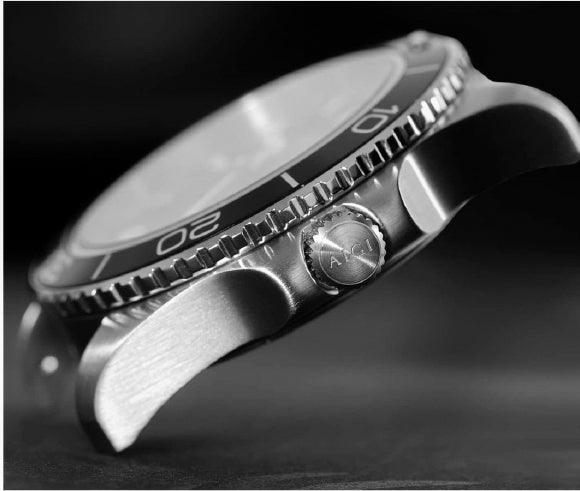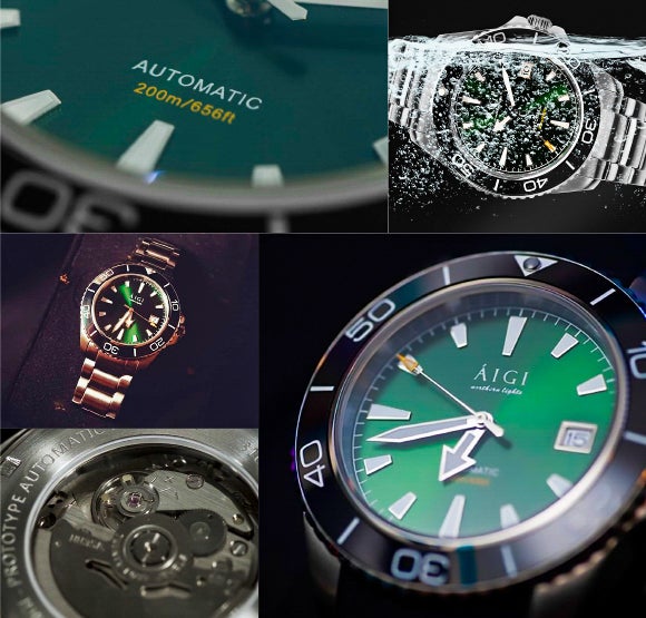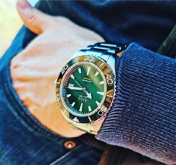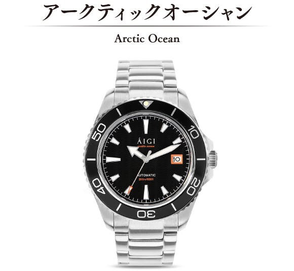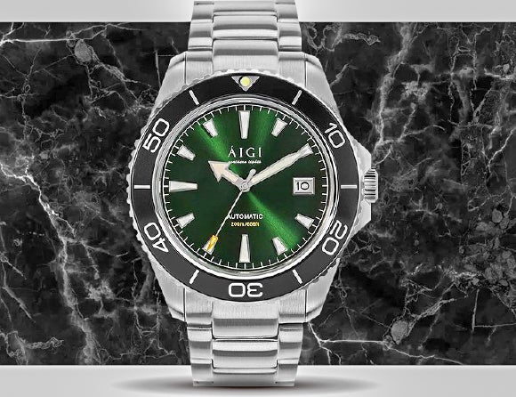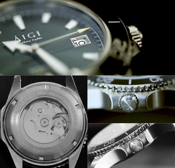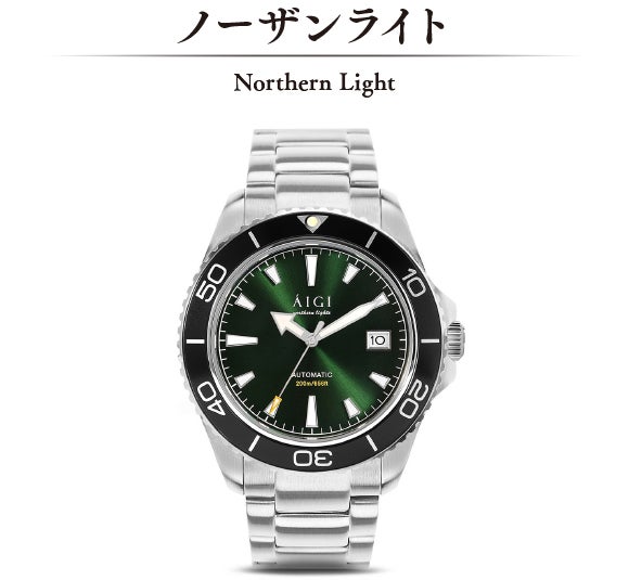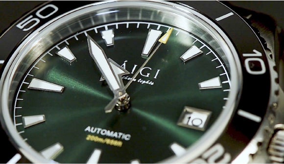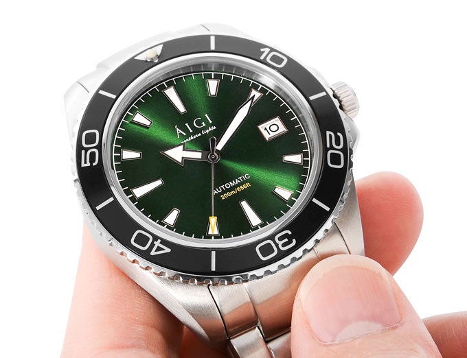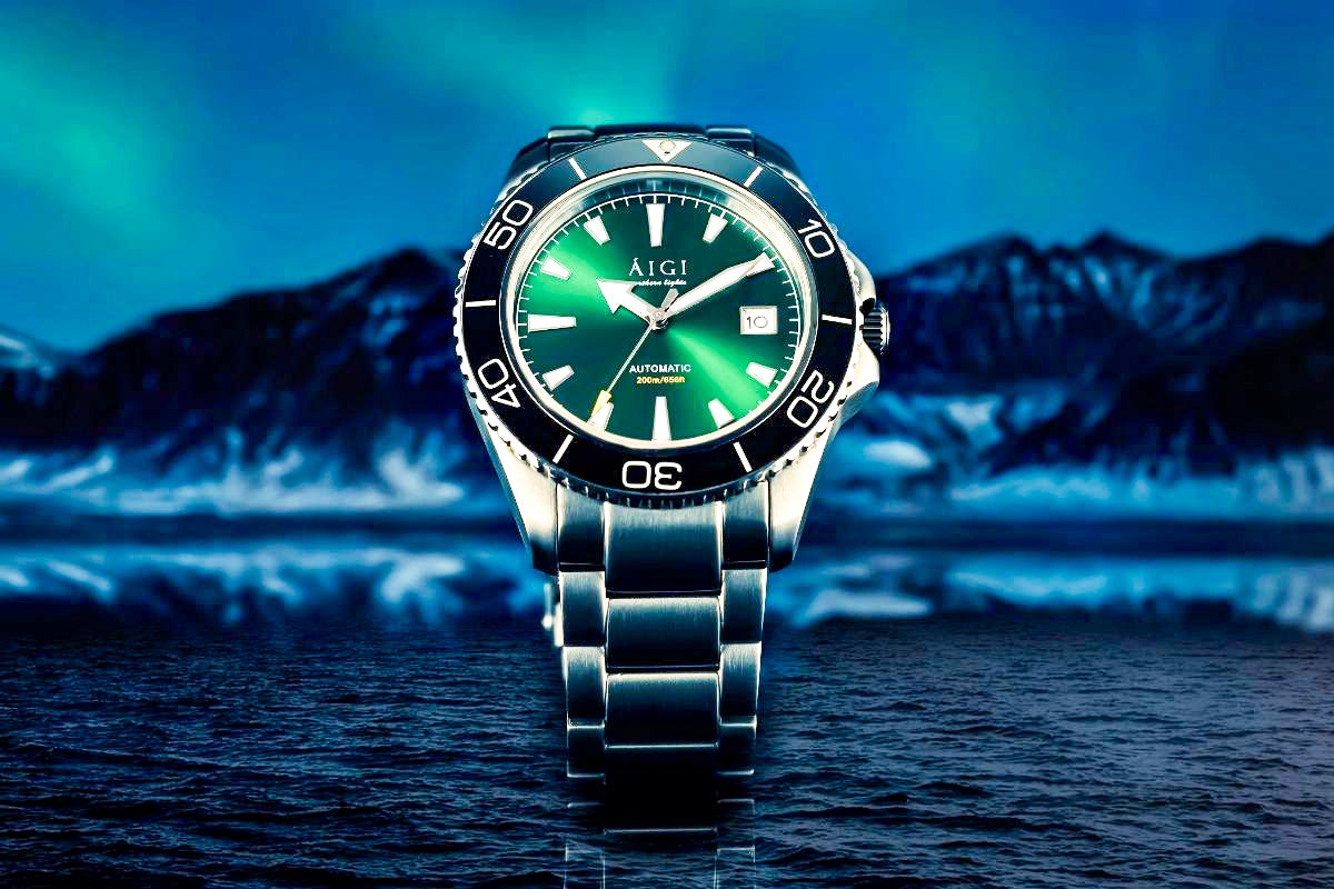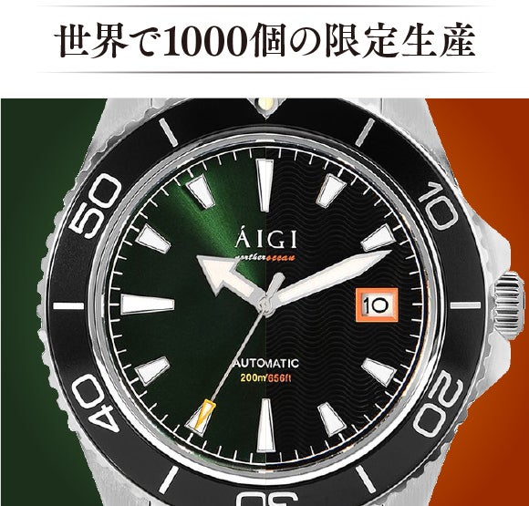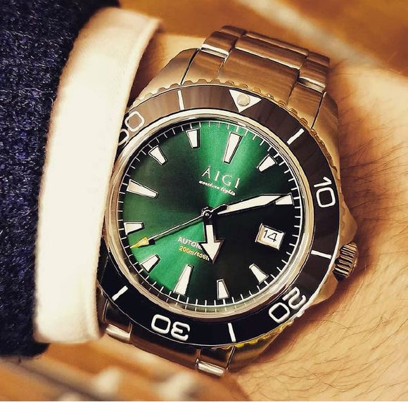 アイギオートマチック(AIGI Automatic)は水深200メートル(20 ATM)まで耐えることができる本格派ダイバーウォッチです。