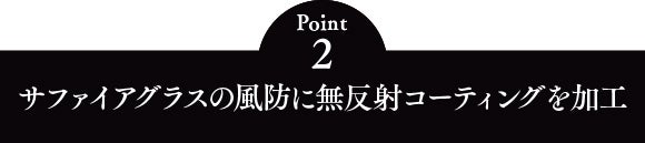 風防部分にブライトリング(BREITLING)のクロノマットといった高品質な時計のごく一部に使用されている無反射コーティング加工を用いたサファイアグラスを用いたり